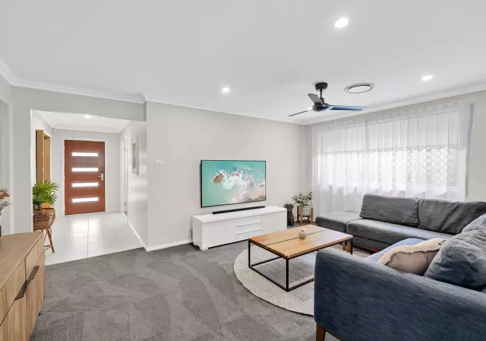 Amazing executive 4 bedroom home in sought after location in Spring Farm. Close to the park and waterway. Neat as a pin and so immaculate. Excellent floor plan for family living with separate media room and attached double garage. Plantation shutters facing the street set this home off beautifully. Modern appliances along with the expected walk-in-pantry, good size laundry. Lawns are exceedingly well kept and are the pride of the owner. Main bedroom is spacious and is complimented with a WIR that has been custom fitted and the ensuite bathroom is so functional. This home wont last long at this price.